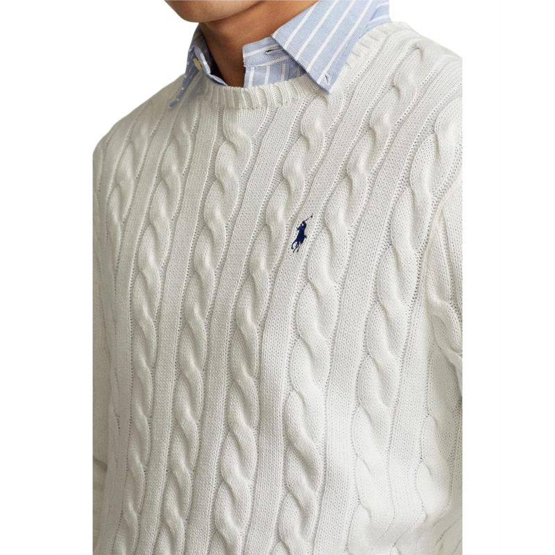 - Warm yourself up in the Polo Ralph Lauren Cable-Knit Cotton Sweater featuring a classic crew neck, cable knit sweater constructed with soft to the touch material. All day comfort ensured! Available in four stunning color options.