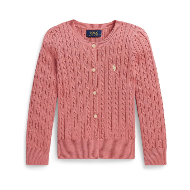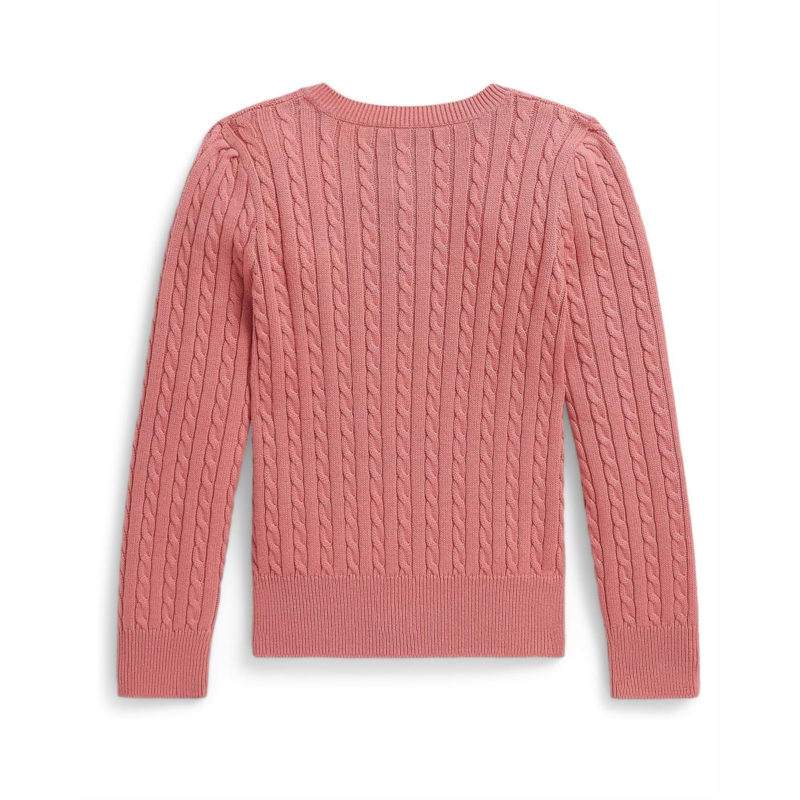 - Cozy up and look pretty as a flower in the Polo Ralph Lauren Kids Cotton-Mini Cable-Tops-Sweater. The cable knit sweater features a crew neck, a full-button closure, a signature pony detail at the left chest, long sleeves, a straight hem, and a ribbed trim.