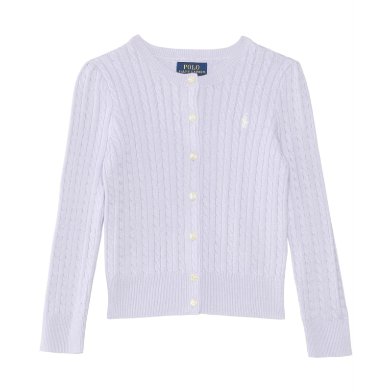 - Cozy up and look pretty as a flower in the Polo Ralph Lauren Kids Cotton-Mini Cable-Tops-Sweater. The cable knit sweater features a crew neck, a full-button closure, a signature pony detail at the left chest, long sleeves, a straight hem, and a ribbed trim.