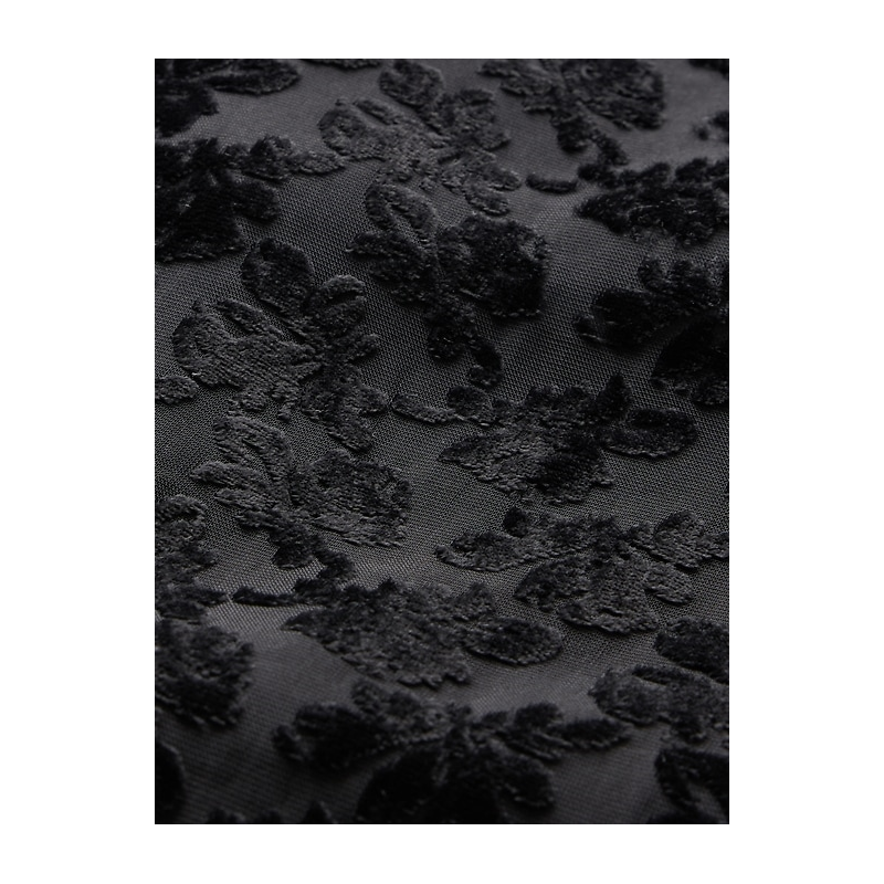 - Allover burnout velvet detailing.