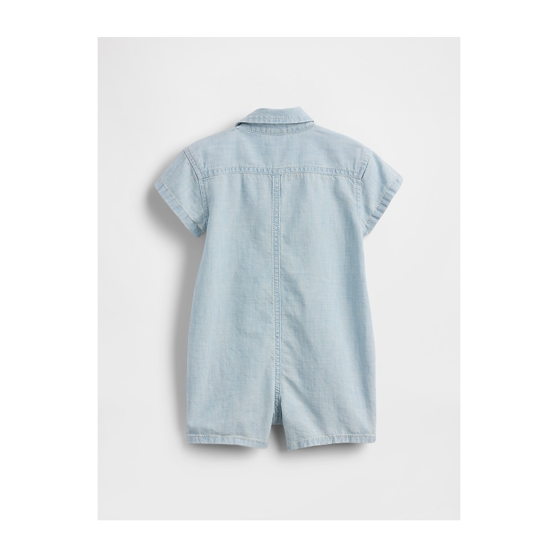 - Authentic non-stretch denim shorty one-piece.
