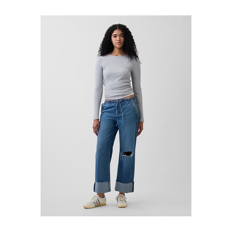 - Look: A easy pull-on loose jean in a medium wash.