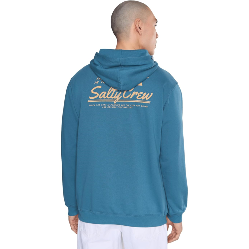 - The Salty Crew Original Fleece is your go-to layer for laid-back days and breezy nights. Designed with a classic hooded neck and adjustable drawcord, it lets you dial in the perfect fit while keeping warmth locked in. The easy pull-on style makes it an instant favorite; just throw it on and head out. Long sleeves offer cozy coverage, while the spacious kangaroo pocket keeps your hands warm and essentials close. Bold screenprinted graphics on the front and back add a signature edge, giving this fleece that authentic, ocean-inspired attitude.