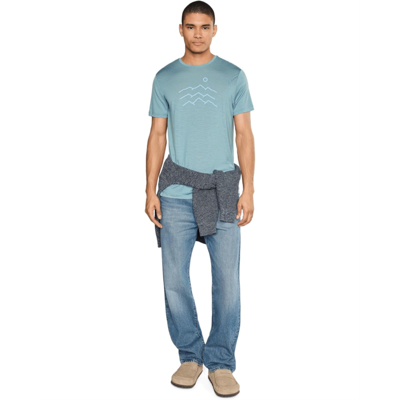 - Soft, comfortable, and versatile for a wide variety of active pursuits, the Icebreaker Merino Blend 125 Cool-Lite Sphere Short Sleeve Tee Across the Peaks features lightweight Cool-Lite Merino jersey fabric blend that helps keep you cool and dry. Its offset shoulder seams help reduce friction, while the side splits at the hem ensure added ventilation and mobility. This casual tee is designed with short sleeves, a crew neckline, and a drop-tail hem for added coverage. The original artwork by Kinsey Hotchkiss draws inspiration from the Three Peaks Trail in Boulder, Colorado.