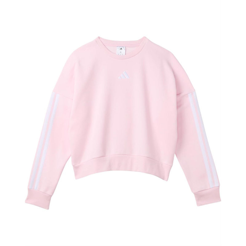 - The adidas Kids 3-Stripes Crew Neck Heather Fleece Pullover blends iconic look. The heathered finish adds a soft, textured touch to this versatile piece.
