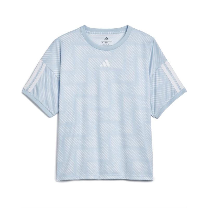 - The adidas Kids Aop World Soccer Top celebrates the excitement of the Beautiful Game with its eye-catching World Cup design. Made for soccer-loving kids, the bold graphics feature World Cup branding and colors. Crafted from soft polyester interlock, this pull-on style top feels comfortable whether kids are playing or cheering from the sidelines. The short sleeves with drop shoulder construction adds a modern touch, whilst the applied 3-Bold Stripes on the sleeves display iconic adidas styling. With its loose fit and above-hip length, this versatile top combines World Cup graphics with comfortable construction for young soccer enthusiasts.