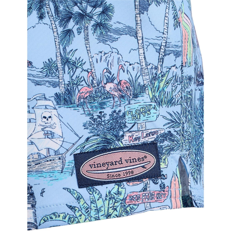 The primary materials that compose this product contain a minimum of 20 percent recycled content.- Designed in a comfortable regular fit with a playful short length, the Vineyard Vines Kids Chappy Trunks are made for cannonballs, sandcastle missions, and spontaneous beach races. The easy pull-on design with a secure drawstring closure ensures a snug yet flexible fit, so they stay put whether hes diving into the deep end or chasing waves. Featuring eye-catching printed patterns, these trunks bring bold personality to every pool party and seaside adventure. A convenient flap back pocket adds just the right touch of function, perfect for stashing small treasures found along the shore.