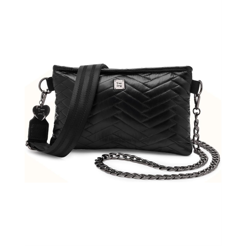 - The modern crossbody bag has arrived, and she is a scene stealer...meet the THINK ROYLN Almost Famous purse. Your style sidekick is ready for any moment...big or small...bold or understated...she is always chic and ready. Perfectly sized for life''s necessities and designed to flatter as a crossbody, this crossbody purse embodies the brand''s Wear it Your Way mantra with two straps (one web and one chain). Made from polyester, it is designed with a zippered main compartment and a zippered interior pocket. This chic bag embraces novelty from motto quilting to levels of shine and beyond, making it the new IT GIRL bag.