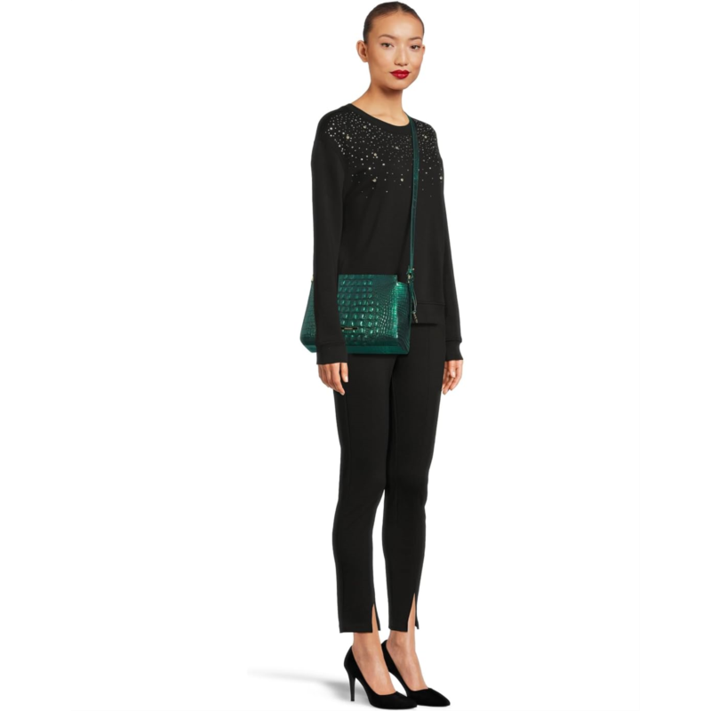 - Add a new moment to your life carrying the Brahmin Hillary. Crafted from leather upper, this handbag features allover croc detailing, adjustable crossbody strap, zippered closure, one zippered interior pocket, key clip, and pen pocket. It comes with one exterior slip pocket, and brand detailing on the front.