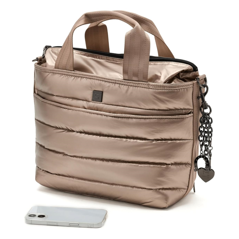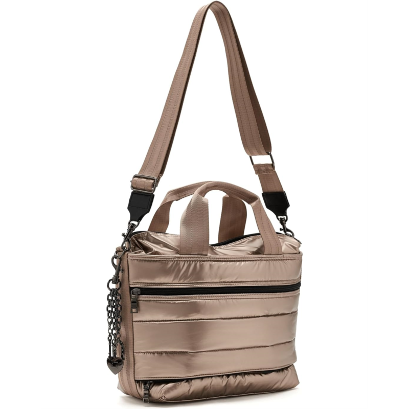 - In the mood for a Getaway? You''ve got the perfect bag for every day exciting adventures...the THINK ROYLN Getaway triple threat combo is a tote + a mini pouch + charm...All meant to mix and match, wear your way, and achieve multiple levels of style and excitement. The details are what make this bag exceptional...The tote is shrunken yet spacious with modern wide quilting for a new level of cozy...The side web detailing and footed bottom balance in structure to this mighty tote. The mini pouch can be used as an inner bag, an accessory to clip on your bag or used as a matching crossbody... And, the brand''s favorite detail? The detachable charm set of course!