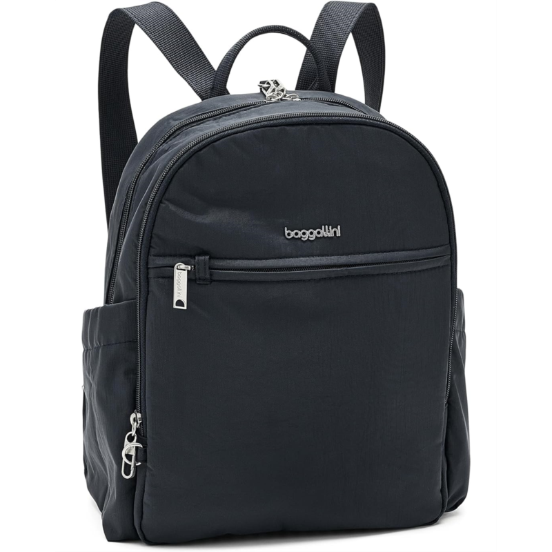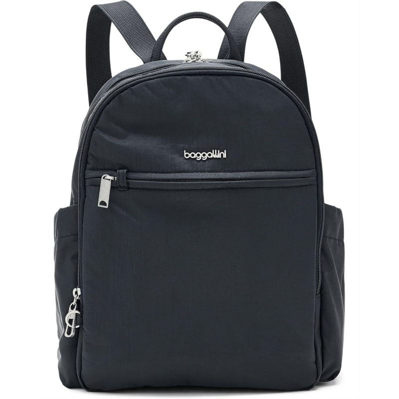 - An icon, reimagined, the Baggallini Securtex Anti-Theft Getaway Backpack takes a best-selling favorite and upgrades it for modern, on-the-go life. Crafted from durable TruNylon with a soft polyester lining, this backpack is lightweight yet built to last through every journey. Thoughtfully designed with two spacious compartments and ten perfectly placed pockets, it keeps essentials organized and easy to access. Locking zippers and cut-resistant material deliver next-level peace of mind, so you can explore confidently wherever the day takes you. A secure zippered closure protects your belongings, while roomy side pockets conveniently hold your water bottle or umbrella. Sleek, versatile, and travel-approved, this backpack transitions seamlessly from daily commutes to weekend getaways.