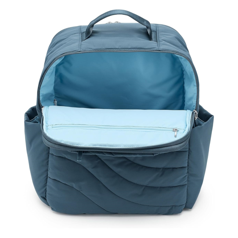 - Versatility with polish? the Baggallini Set Wave Backpack transitions from office to gym to airport without missing a beat. Behind its clean, contemporary design lies thoughtful functionality: zippered water bottle pockets, a dedicated laptop compartment, and a travel sleeve for hassle-free journeys. This is a minimalist style that works as hard as you do.