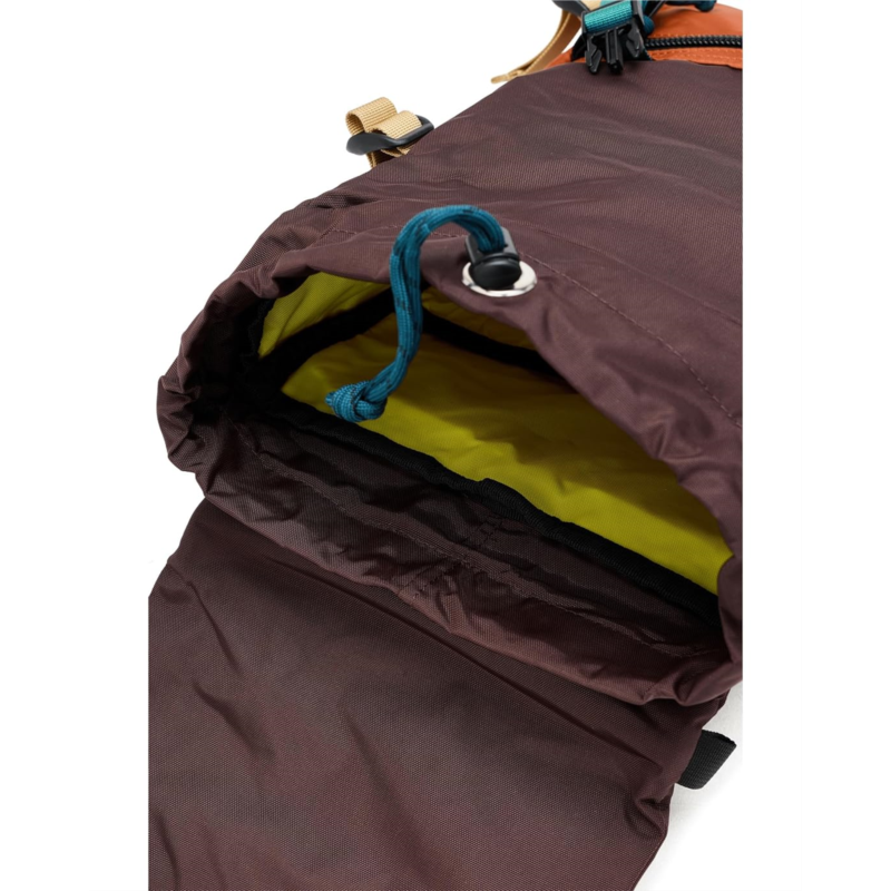 - Main compartment with drawstring and double push buckle closure straps.