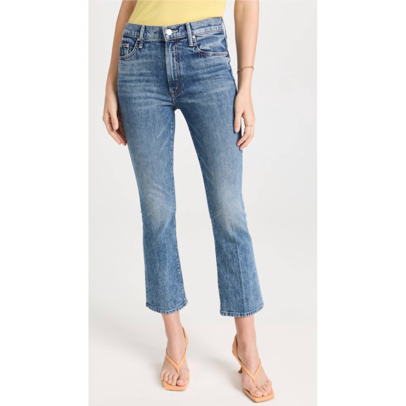 We especially love this cropped jean with a cute pair of slides or sandals.Meet the Insider Ankle Jeans by Mother, a perfect blend of style and comfort in the shade Destination Unknown. Crafted from a mid-weight cotton blend with a touch of elastane for flexibility, these jeans boast a high-rise waist and ankle-length, straight-leg cut. Offering a classic button closure with zip fly and convenient 5-pocket styling, they are made in the USA from imported materials. Care instructions recommend a cold wash to maintain their premium feel, with a key rise of 9.75 inches, an inseam of 26.5 inches, and a leg opening of 14.25 inches.