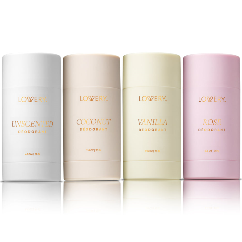 Elevate your daily routine with the LOVERY Elegant Womens Deodorant Sticks, a luxurious 4-pack designed to keep you feeling fresh and confident all day long. Each 75g stick is thoughtfully formulated without aluminum, ensuring you can enjoy 24-hour odor control while embracing the beauty of natural ingredients. The chic and elegant packaging makes these deodorants not only a functional essential but also a stylish addition to your beauty regimen.This exquisite collection features four delightful scents - the warm and comforting aroma of vanilla, the tropical and refreshing essence of coconut, the delicate and romantic fragrance of rose, and an unscented option for those who prefer a minimalist approach. Whether youre heading to the office, hitting the gym, or enjoying a night out, these deodorants provide effective protection without compromising your skins health or your personal style.Crafted with care, the LOVERY deodorants are gentle on the skin, making them suitable for all skin types. The smooth application glides effortlessly, leaving no sticky residue behind, so you can feel confident and comfortable all day. Each scent is designed to uplift your spirit and add a touch of elegance to your routine, allowing you to choose the perfect fragrance to match your mood.Experience the perfect blend of effectiveness and luxury with the LOVERY Elegant Womens Deodorant Sticks 4-pack. Treat yourself or gift it to a loved one, and embrace a new level of freshness that lasts. Stay confident, stay elegant, and let your natural beauty shine with LOVERY!* 75g Vanilla Deodorant Stick * 75g Coconut Deodorant Stick * 75g Rose Deodorant Stick * 75g Womens Unscented Deodorant Stick