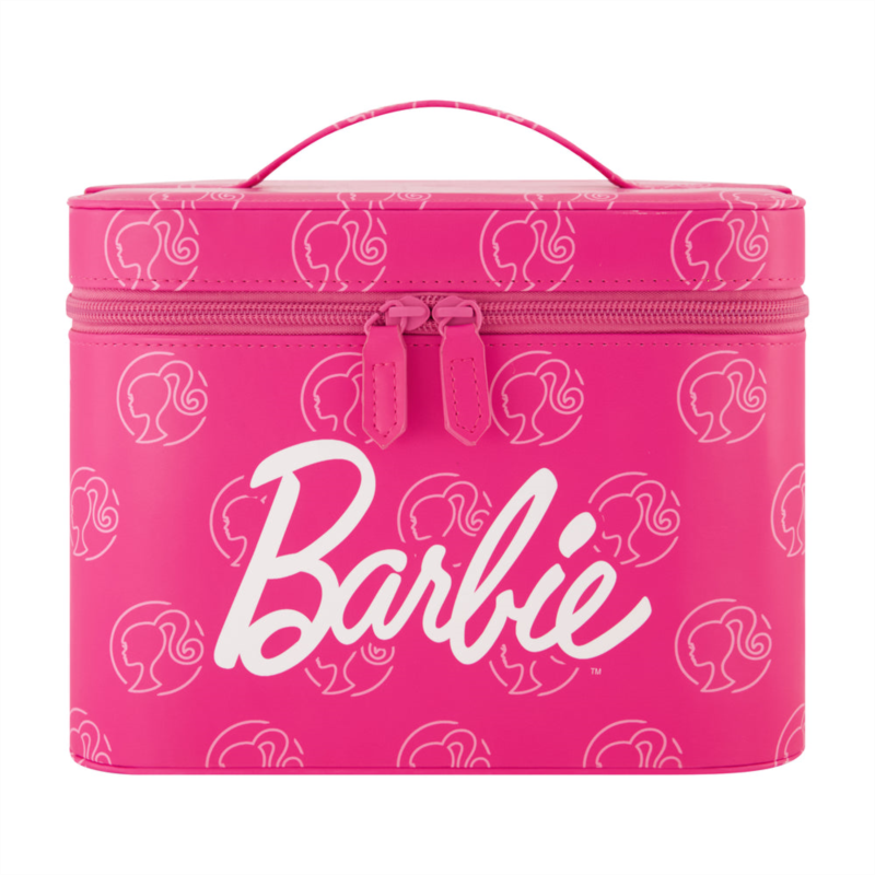 Stay organized in style with the Barbie Large Cosmetic Case Organizer! Featuring Barbie’s iconic logo in a vibrant pink design, this officially licensed cosmetic case is perfect for storing all your beauty essentials. With a spacious main compartment, you’ll have plenty of room for makeup, skincare products, and toiletries. The built-in mirror under the lid makes it easy to touch up your look wherever you go. Equipped with dual zipper pulls for secure closure and a sturdy top handle for easy carrying, this durable case is ideal for travel or daily use. A must-have for any Barbie fan looking to add a touch of flair to their beauty routine!-Officially licensed Barbie cosmetic case with a bold, all-over Barbie logo design in vibrant pink.-Spacious main compartment provides ample storage for cosmetics, toiletries, and beauty essentials.-Built-in mirror under the lid for convenient touch-ups anytime, anywhere.-Dual zipper pulls for secure closure and quick, easy access to your items.-Sturdy top handle makes it easy to carry on the go, ideal for travel or daily use.-Durable and stylish construction, perfect for Barbie fans who love to stay organized in style.-Materials - 100% Polyvinyl Chloride -Dimensions - 6.75H X 9W X 6D-Weight - 0.5lbs.-Imported