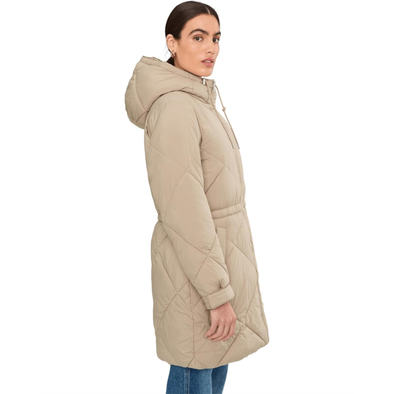 - Stylish Feature: Long diamond quilted parka jacket with a soft sherpa lined hood.