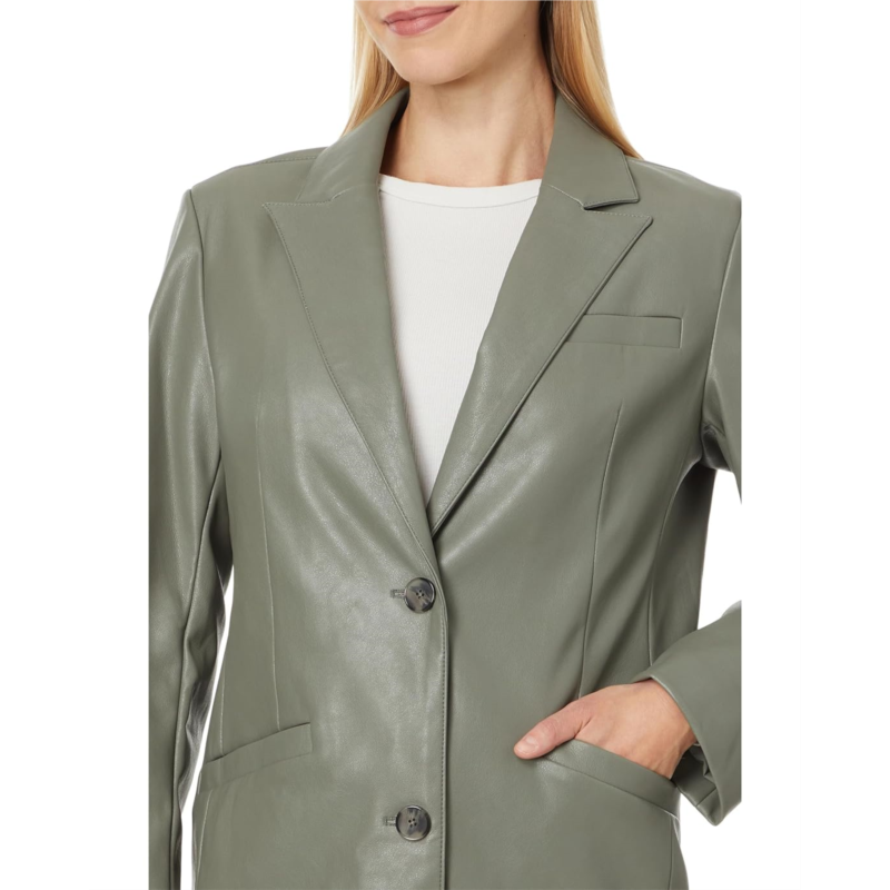 - Own your look by styling Levi''s Faux Leather Blazer! This chic single-breasted blazer features a sophisticated lapel notch collar and sleek long sleeves, ensuring you stand out in any crowd. The two-button front closure adds a classic touch, while the two lower pockets provide practicality and convenience.