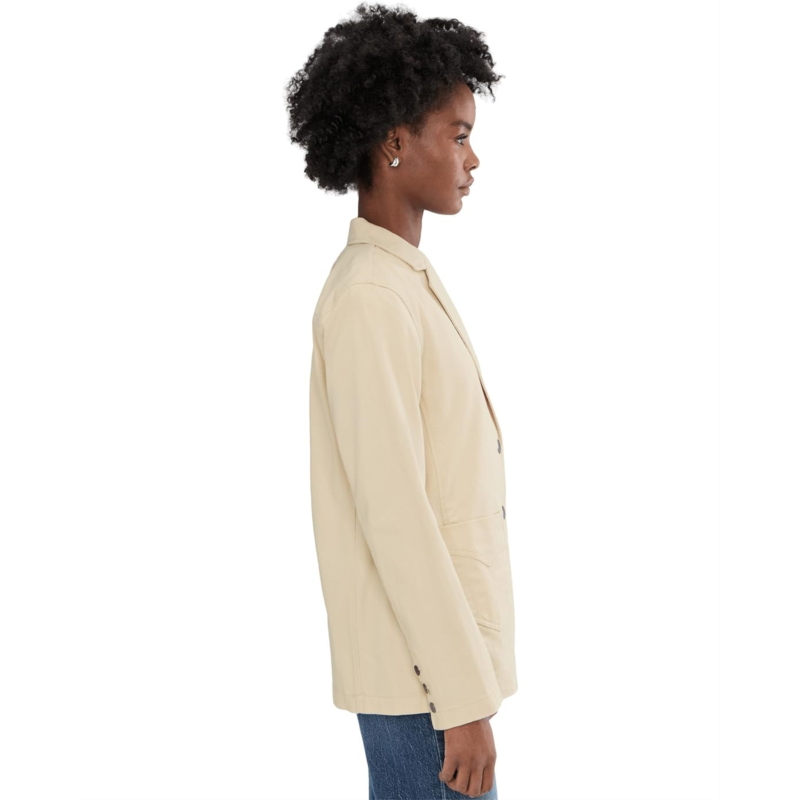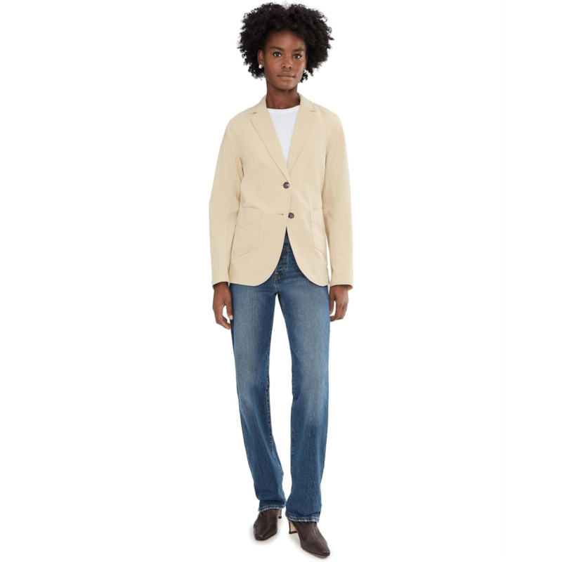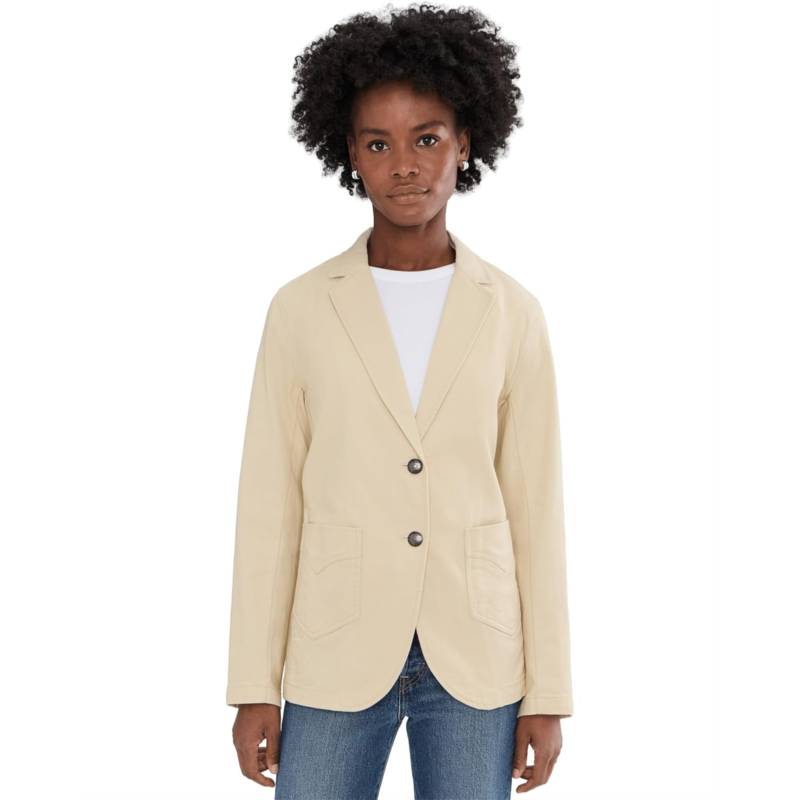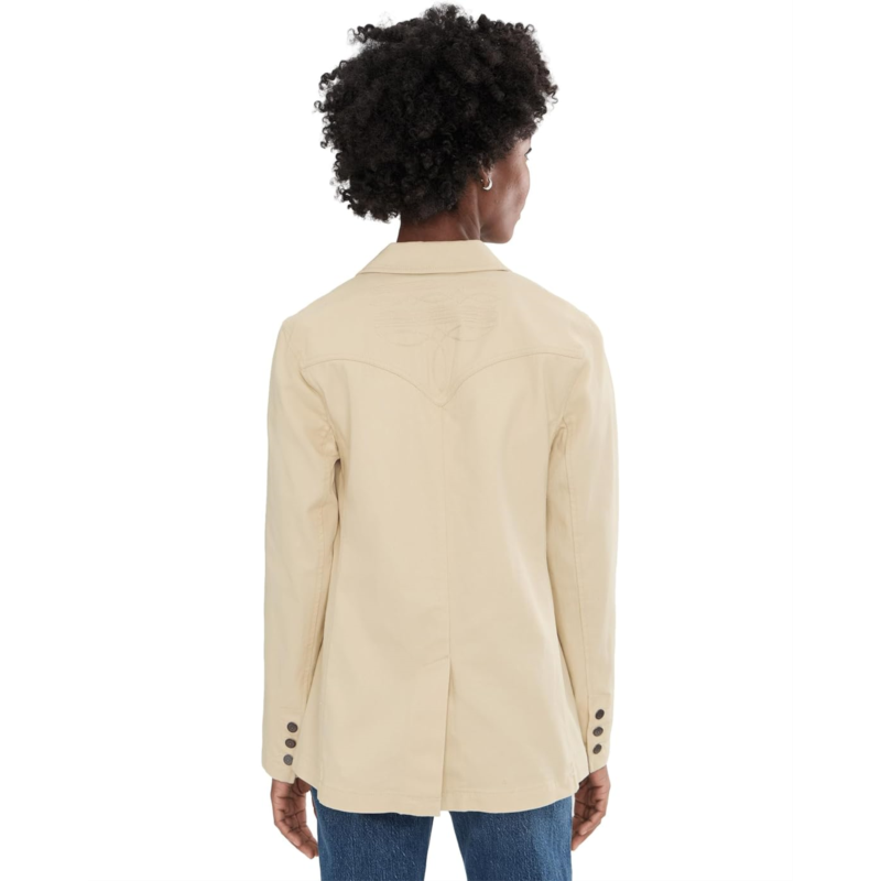 - The Ariat Bianca Blazer is a buttoned blazer featuring western stitch detail on the back for a stylish appeal. Made from cotton, it is designed with long sleeves, buttoned cuffs, a collared neckline, and a straight hem. This chic blazer is a great choice to style up your formal looks and casual outfits.