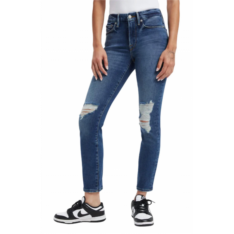 GOOD AMERICAN legs ripped high waist cigarette jeans in indigo227