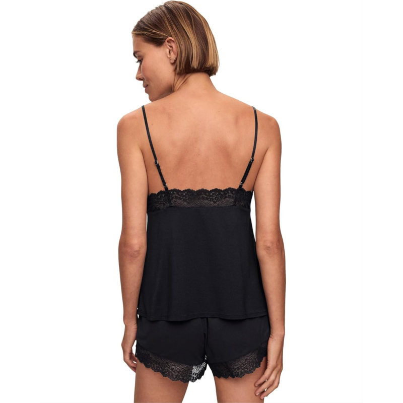 - Effortlessly chic and ultra-comfy-where femininity meets comfort. The Eberjey Lara Cami & Short PJ Set is designed to elevate your loungewear with a relaxed fit and delicate details. The deep V cami features a sheer lace inset and keyhole detail for a touch of allure, while adjustable straps ensure a perfect fit. Paired with mid-rise shorties adorned with lace trim, this set combines flirty charm and everyday wearability. Crafted with love, it''s made from eco-conscious materials verified by OEKO-TEX Standard 100, ensuring comfort without harmful chemicals.