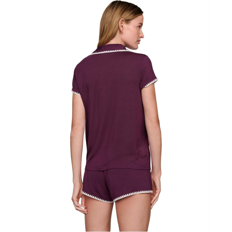 - Have peaceful slumber in the Eberjey Frida- The Whip Stitch Short PJ Set. This set offers a notch collar with a button-front closure, short sleeves, contrast whipstitch detailing and low-rise cheeky shorts with an elastic waistband.