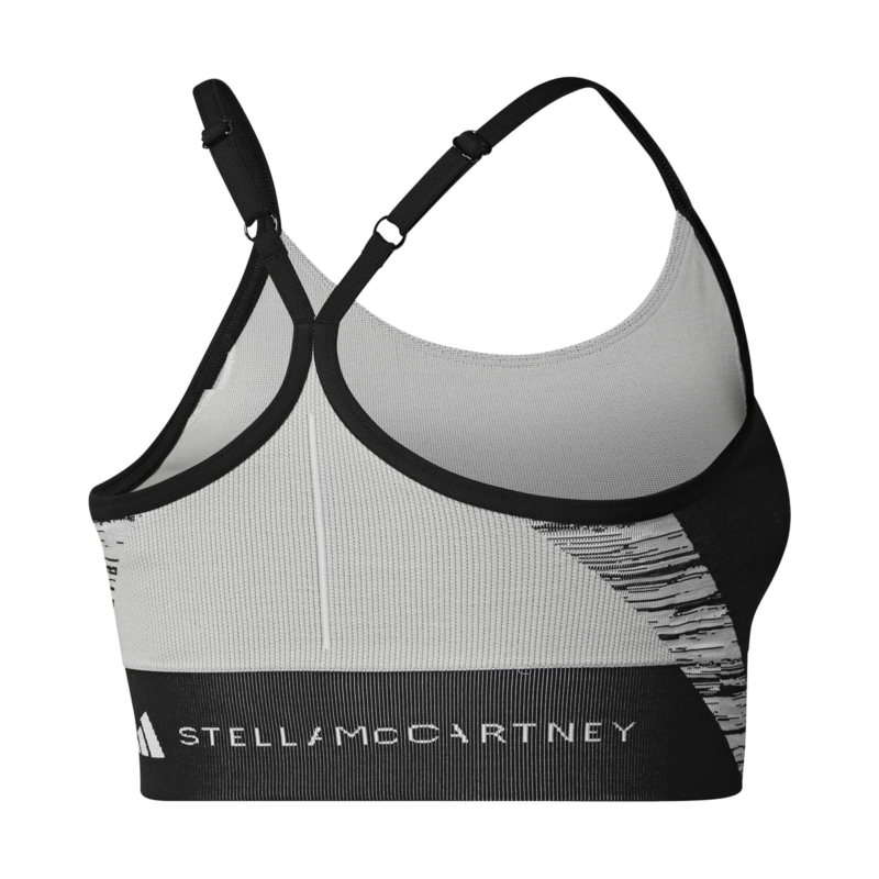 - Featuring seamless knit fabrication that moulds to your body and removable pads in the inner bra, the adidas by Stella McCartney TrueStrength Seamless Yoga Light Support Sports Bra IP8336 provides good coverage and support. The compressive feel allows you to twist, stretch and fold with comfort and confidence. The pull-on style sports bra features a breathable construction, sleek adjustable straps with racerback, and a wire-free design.