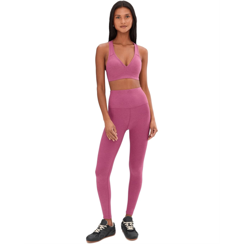 - Destined to be the most essential active bra in your collection, the body-contouring Beyond Yoga Spacedye Lift Your Spirits Bra with removable pads celebrates your curves and offers great support for your workout, or under your favorite tee. Pair it with matching high-waisted leggings for the studio or as an athleisure outfit aesthetic, then throw on a denim jacket after the gym for barre-to-brunch style.