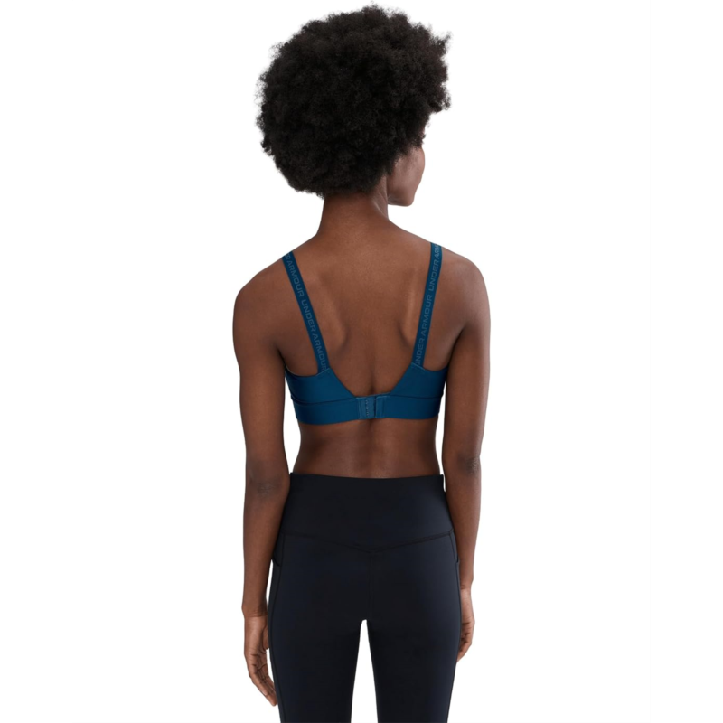 - Experience sculpting comfort and poise wearing the Under Armour Infinity Mid Impact Sports Bra. Featuring HeatGear fabrication, the bra wicks sweat and dries quickly while delivering a next-to-skin feel. With adjustable shoulder straps, it has hook-and-eye closure at the back.