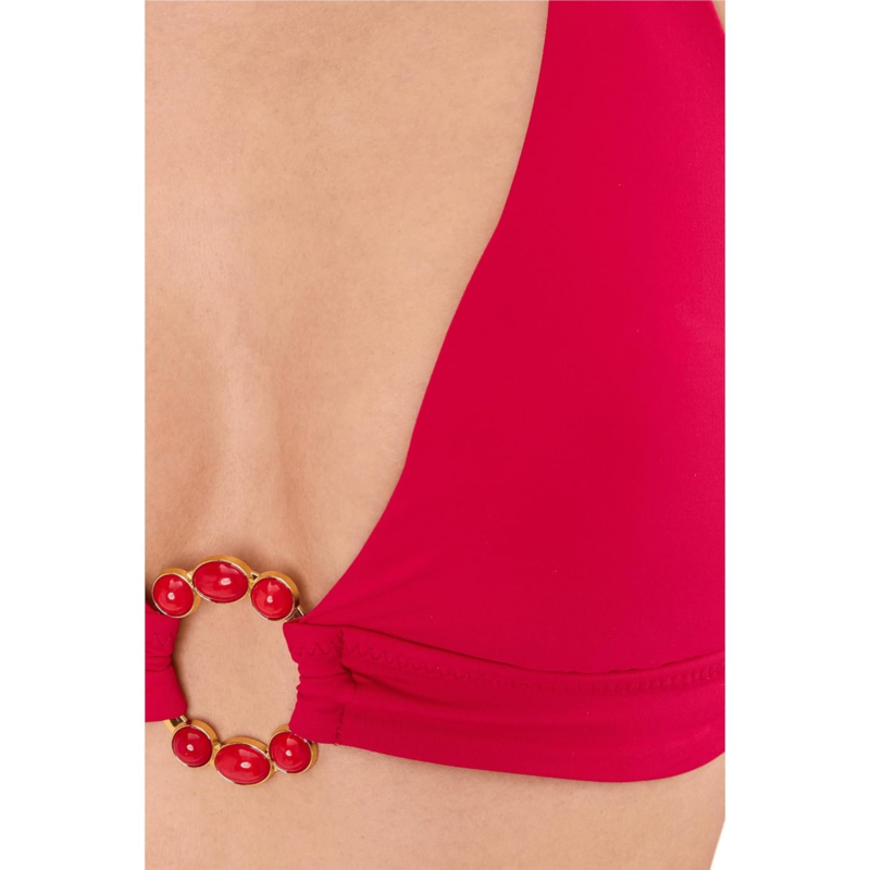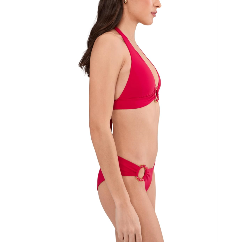 - Style up your look wearing the BECCA Marble Canyon Mira Ring Front Halter Top that has a great fit and support with the accent of marbleized inlay stones on the front ring. It features removable cups and adjustable soft ties at neck & back.