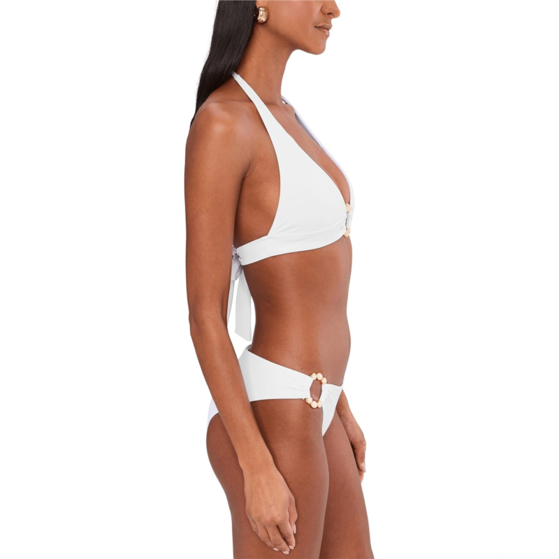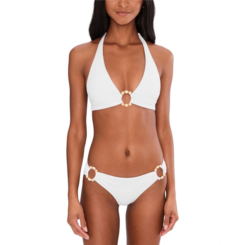 - Style up your look wearing the BECCA Marble Canyon Mira Ring Front Halter Top that has a great fit and support with the accent of marbleized inlay stones on the front ring. It features removable cups and adjustable soft ties at neck & back.
