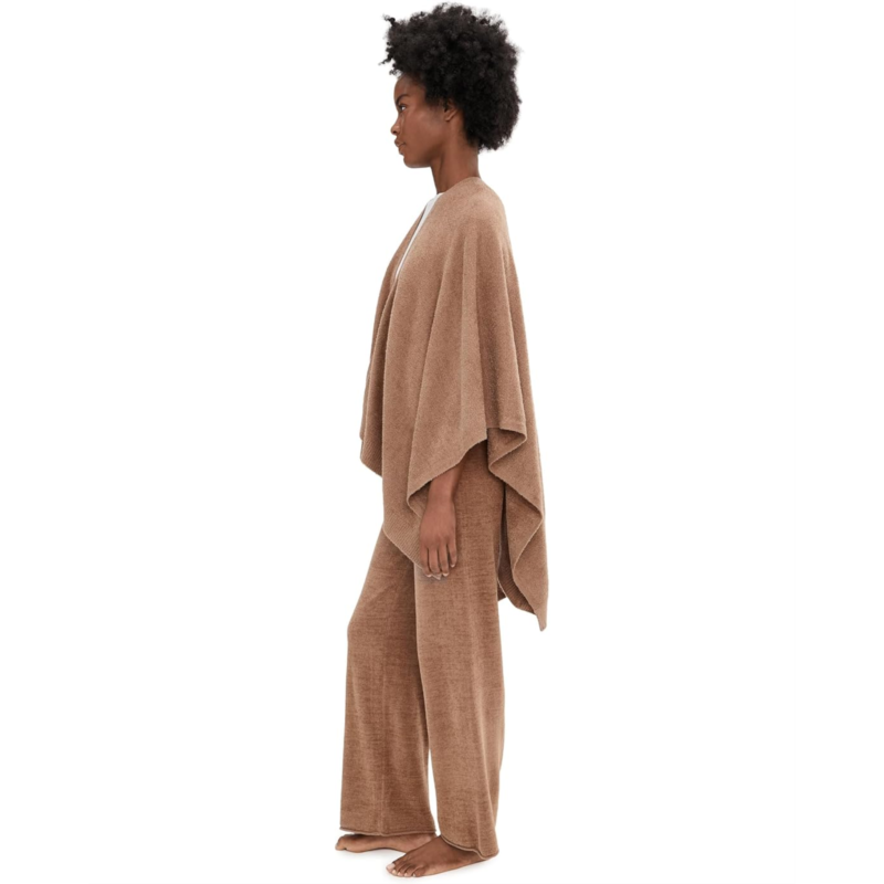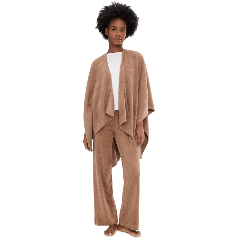 - Don a classy and stylish look by layering your basic tee with the Barefoot Dreams CozyChic Lite Heathered Weekend Wrap. The open-silhouette cardigan has a shawl neckline, a long-sleeved poncho silhouette, and a designer asymmetrical hem for a classy look.