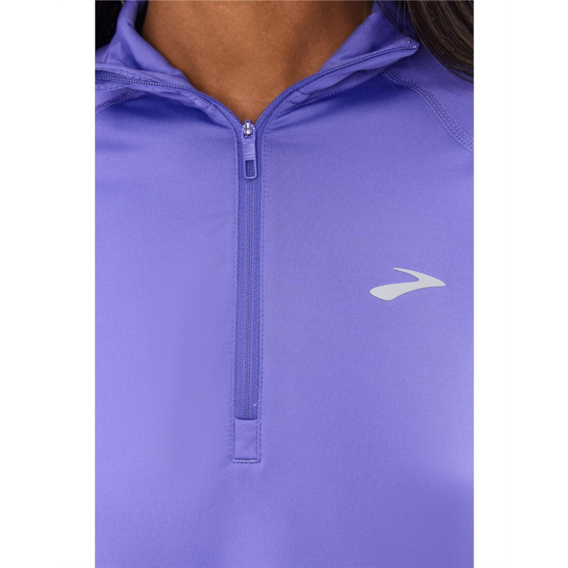 - Engineered for the modern runner, the Brooks Dash 1/2 Zip 3.0 is your go-to layering essential, delivering distraction-free comfort with lightweight warmth and next-level mobility. Crafted in a semi-fitted silhouette for a streamlined look, its built with advanced stretch fabric that adapts to your every move-whether youre pacing through early morning miles or cooling down post-run. The collared neck with a half-zipper design offers adjustable ventilation, while thumbholes keep sleeves securely in place for a stay-put feel. Reflective branding enhances visibility in low-light conditions, ensuring youre seen and safe. The pull-on design and smooth construction eliminate bulk and chafing, making it ideal for layering without compromising breathability or performance.