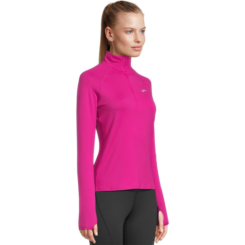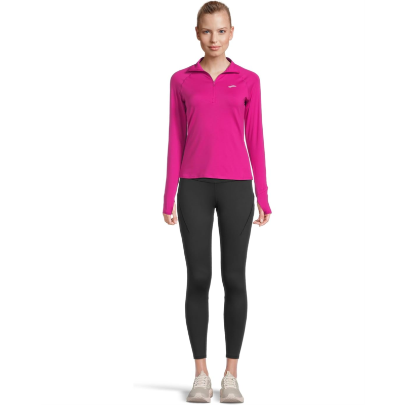 - Engineered for the modern runner, the Brooks Dash 1/2 Zip 3.0 is your go-to layering essential, delivering distraction-free comfort with lightweight warmth and next-level mobility. Crafted in a semi-fitted silhouette for a streamlined look, its built with advanced stretch fabric that adapts to your every move-whether youre pacing through early morning miles or cooling down post-run. The collared neck with a half-zipper design offers adjustable ventilation, while thumbholes keep sleeves securely in place for a stay-put feel. Reflective branding enhances visibility in low-light conditions, ensuring youre seen and safe. The pull-on design and smooth construction eliminate bulk and chafing, making it ideal for layering without compromising breathability or performance.