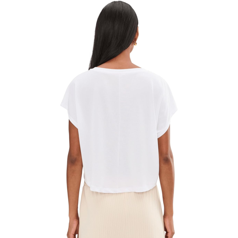 - Meet your favorite sets new best friend. Layer on the relaxed-fit Beyond Yoga Studio Luxe Cropped Tee before or after class. It features a high scoop neckline with a ribbed neckband, dropped sleeves, and a high-low hem.