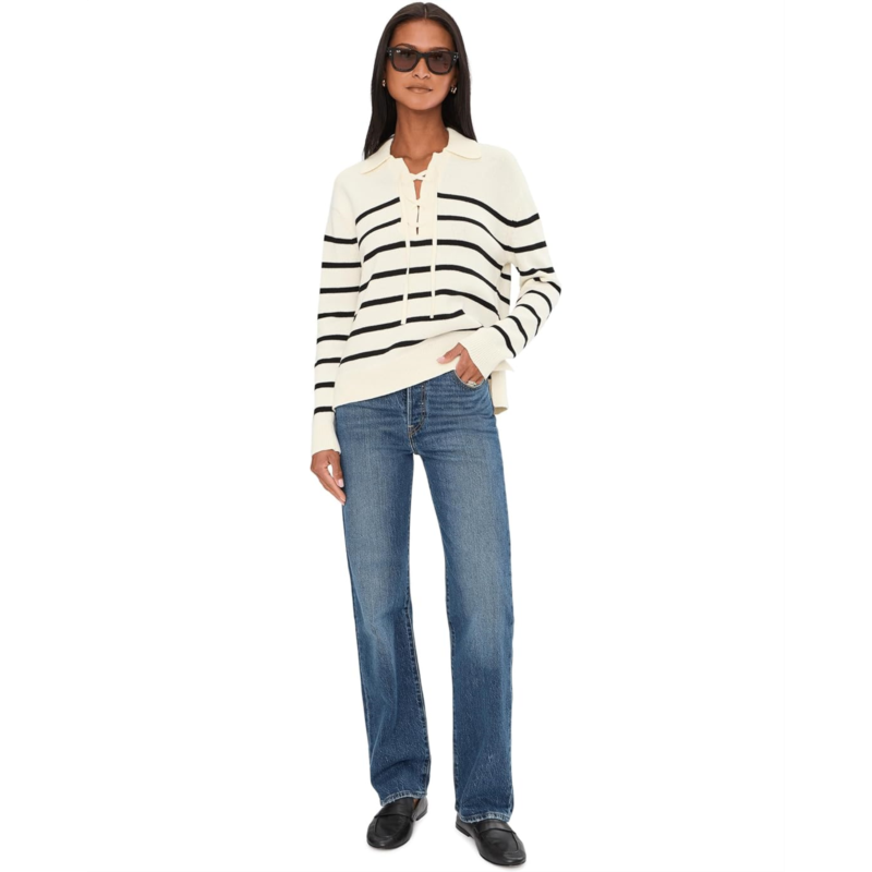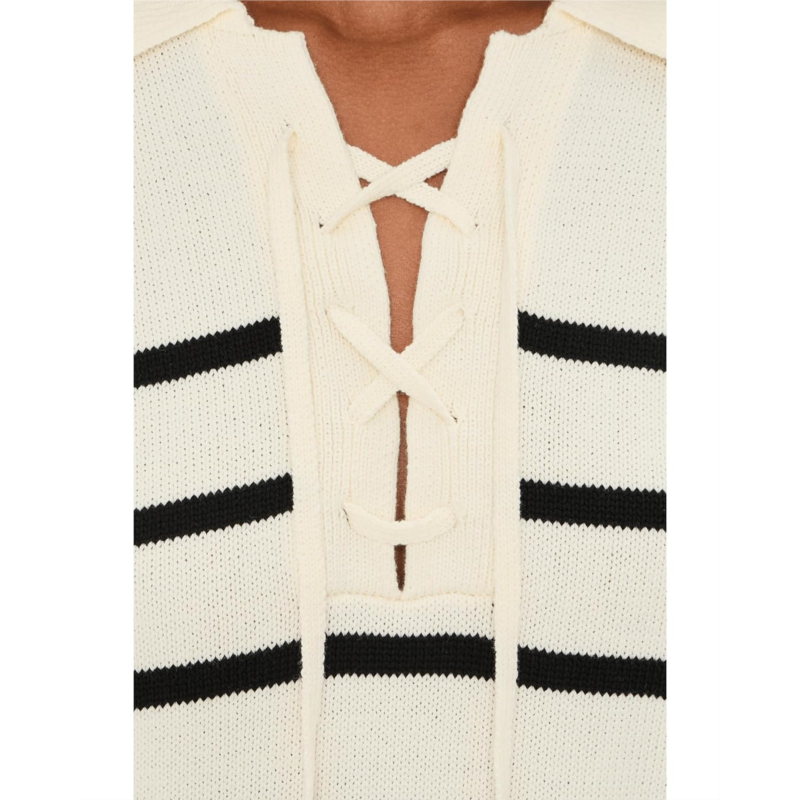 - Lean into easy, but ever-stylish knits this season donning the Michael Stars Adrienne Collared Pullover. Designed in a relaxed fit, this sweater drapes beautifully for that laid-back yet polished silhouette you love. The classic collar adds a refined touch, while the subtle lace-up detail brings modern character and a hint of sporty charm. Crafted for comfort and versatility, its soft knit feel makes it perfect for all-day wear, from busy office mornings to relaxed weekend brunches. The pull-on design keeps styling simple and seamless, while long sleeves offer cozy coverage during cooler days. Ribbed trim enhances the structure and fit, and the stripe detail adds a timeless accent that elevates the entire look.