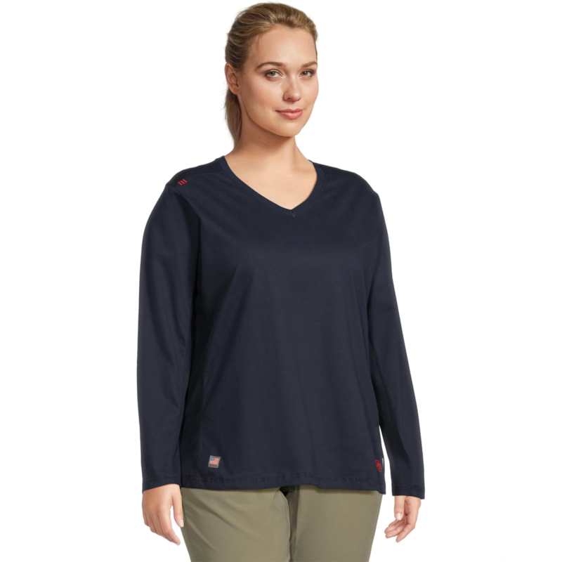 - The Ariat Plus Size FR AC Crew Top is a casual top that comes with a rib knit collar and cuffs. It is styled with long sleeves, a V-neckline, a taped inside back seam, and a straight hem. Made from cotton fabric, this casual top is an ideal choice for your everyday wear.