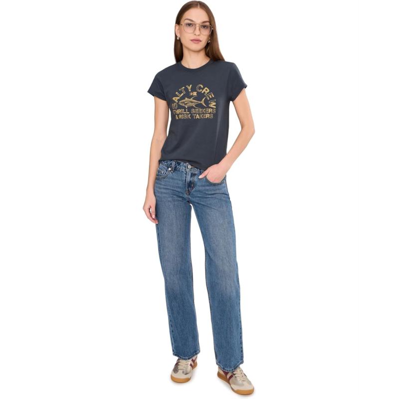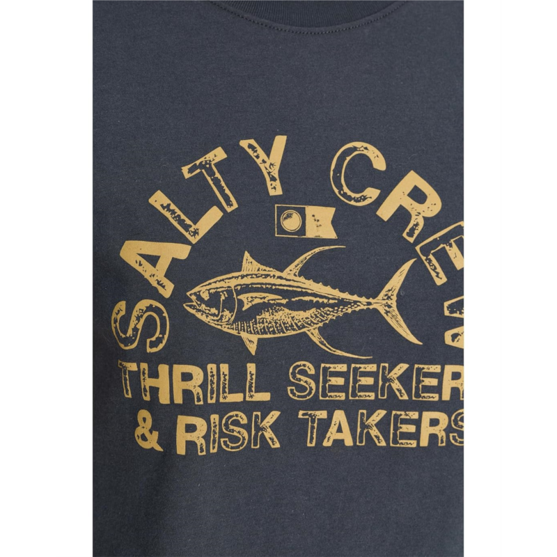 - Show off your sleek and smart look wearing the Salty Crew Stamped Modern Tee. The pull-on style tee features a crew neck, short sleeves, bold print at the chest, and a straight hem.
