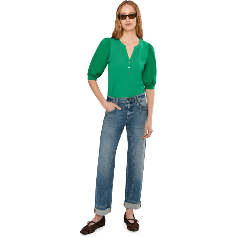 - Introducing the Lilly Pulitzer Ronson Knit Top! Stay stylish and comfortable in this straight-fit top featuring a crew-notched neckline with branded buttons on the front placket. The woven puff elbow-length sleeves and smocked cuffs add a fun touch, while the straight hem ensures a flattering fit. Perfect for any occasion!