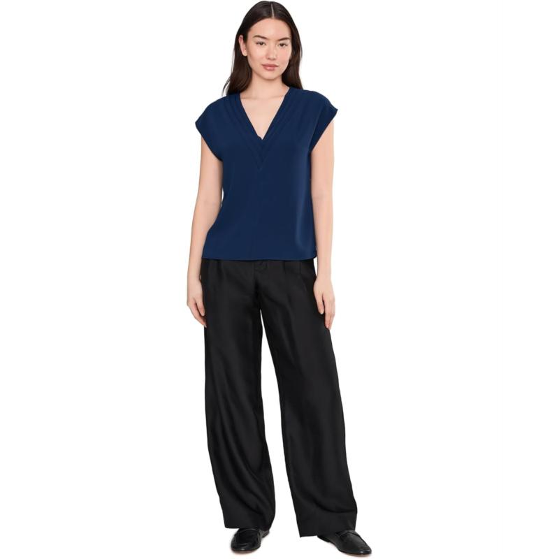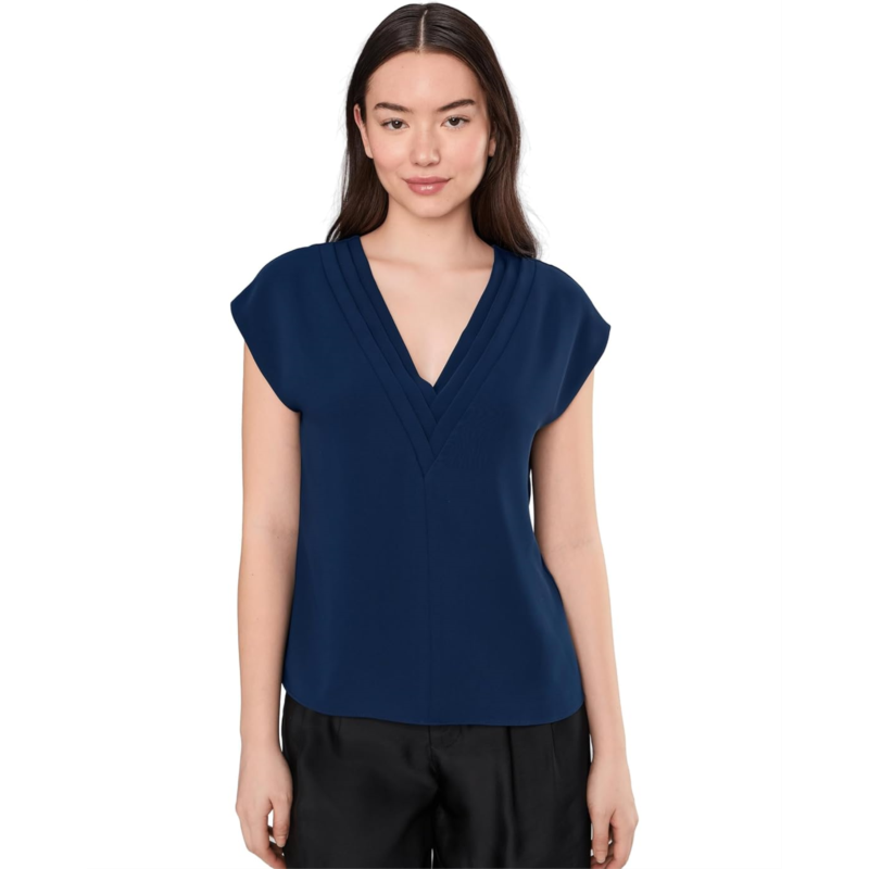 - Throw it on, feel amazing wearing the Trina Turk Zula Top. This top features V-neckline, short sleeves, pull on closure, fully lined, and pleated around the neckline.