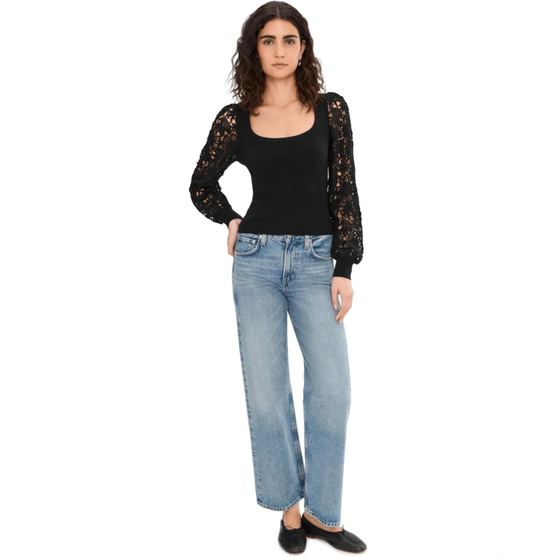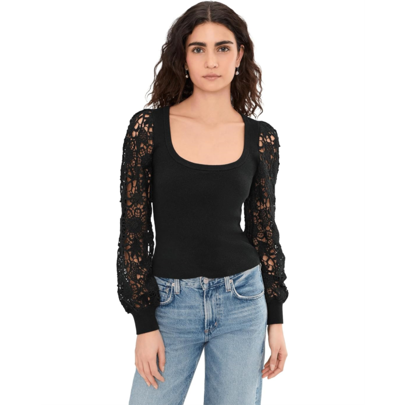 - Not your average basic, PAIGE Maya Top. Crafted in a flattering regular fit, this pull-on style skims the body comfortably without feeling restrictive, making it perfect for all-day wear. The scoop neckline adds a touch of femininity while beautifully framing the collarbone, ideal for layering or wearing solo. Long sleeves bring cozy coverage, while the delicate embroidered floral detailing along the sleeves adds an eye-catching, elevated finish that sets this piece apart from basic knits. The ribbed texture enhances shape and stretch, offering both structure and softness in one effortless silhouette.