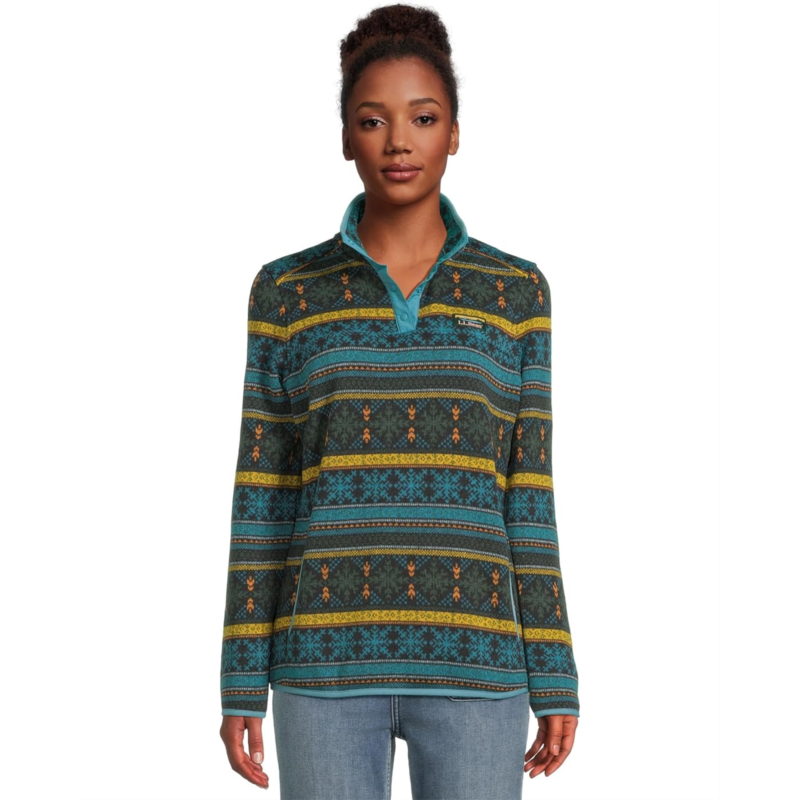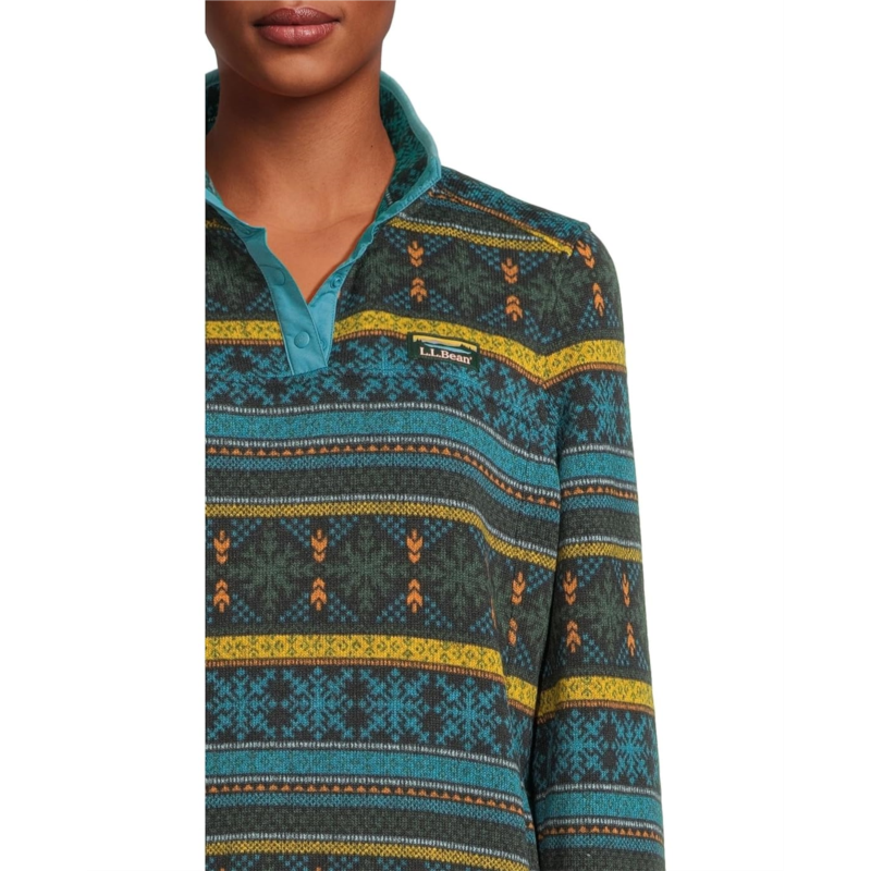 - Super chic and warm, the L.L.Bean Sweater Fleece Pullover Print is something that youll reach for again and again.