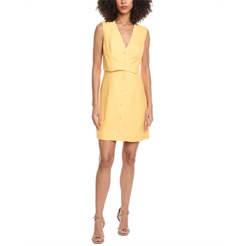 Introducing the Sandro Woven Linen-Blend Dress, a stunning Parisian piece that embodies effortless chic style. This dress in Jaune Orange features a flattering V-neck and button front detail. Made from a luxurious blend of 67% viscose and 33% linen, with a 100% polyester lining, this dress is perfect for any occasion. Please note that size selections are European, so be sure to reference the size chart for US conversions. With a length of approximately 35 inches from shoulder to hem, this dress is sure to turn heads. Dry clean only. Imported. Model is 5''12 and is wearing a size 40. Measurements may vary slightly by size. Don''t miss out on adding this beautiful Sandro dress to your wardrobe today! SFPRO03659.