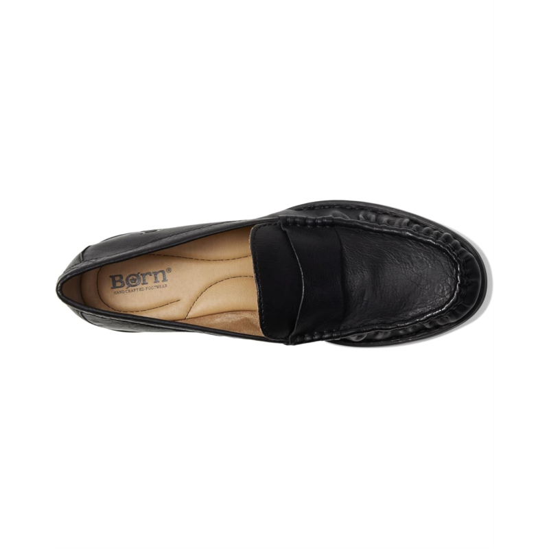 - Step into the moccasin-toe Born Maris loafer for cozy comfort with a retro feel. Crafted from soft hand-finished full-grain leather or suede leather upper, breathable micro-suede lining, and cushioned micro-fiber covered footbed with added foam for extra comfort.