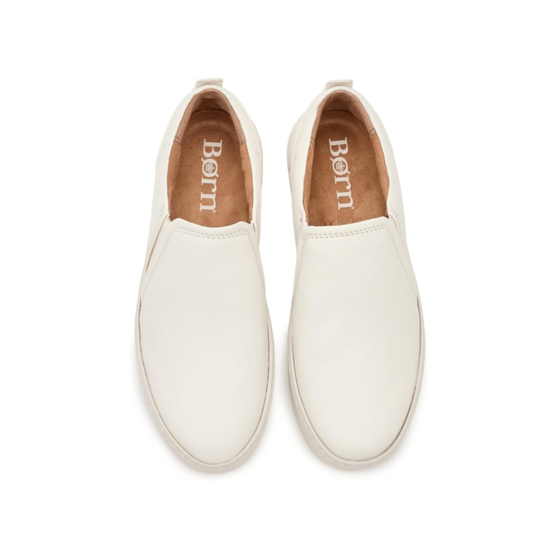 - Step into the Boern Mira Slip-On sneaker for fresh vibes and effortless, lightweight comfort. The style is crafted from a soft, hand-finished full-grain leather or suede leather upper, breathable micro-suede lining, and a removable cushioned micro-suede-covered footbed with added foam for extra comfort.