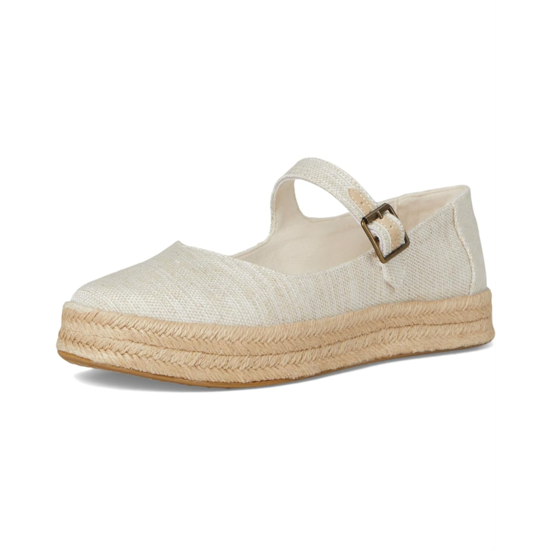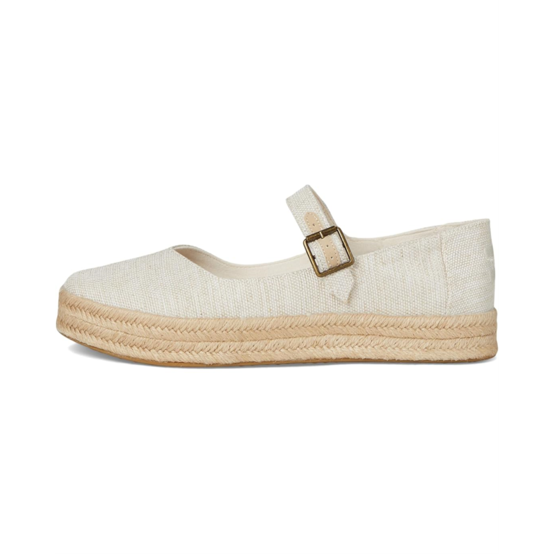 - Walk in comfort, step out in style: The TOMS Carolina Mary Jane is the perfect blend of effortless elegance and playful flair. Crafted with a canvas upper and soft polyester lining, these Mary Jane flatform espadrilles deliver chic sophistication and lasting wear. The custom CloudBound foam insoles provide all-day comfort and support, while the non-removable PU insole ensures long-lasting cushioning. Featuring a trendy buckle strap closure for a secure fit, the rope-wrapped platform and midsole add a stylish, rustic touch.
