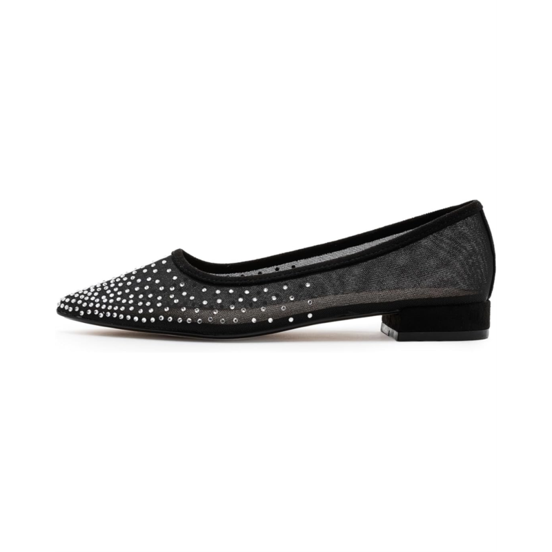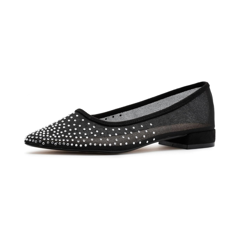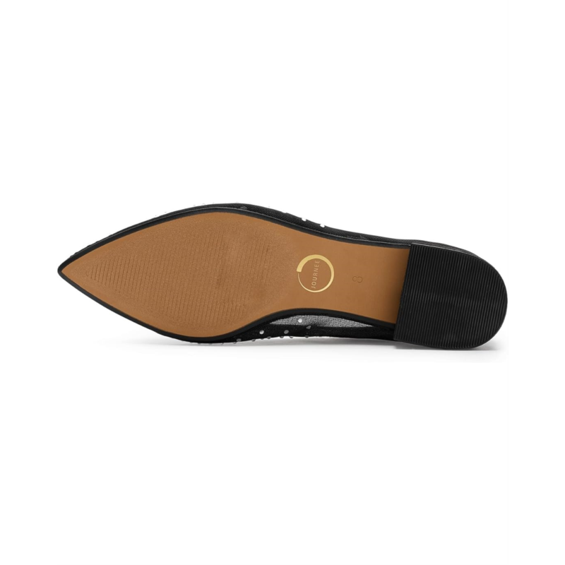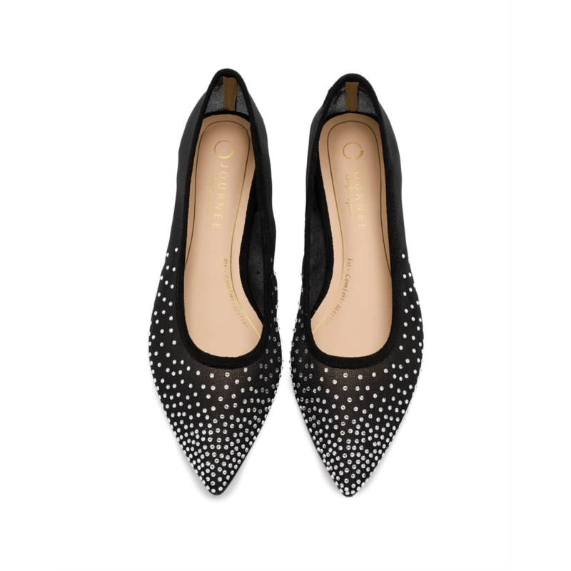- The Journee Collection Gracelynn is where effortless elegance meets all-night comfort. Designed to elevate your evening looks, this glamorous ballet flat features dazzling man-made rhinestone uppers that instantly add sparkle to any outfit. The sleek pointed-toe silhouette creates a refined, sophisticated finish, making it a perfect match for both formal occasions and polished semi-casual ensembles. Crafted with a smooth PU upper, lining, and insole, the Gracelynn feels as luxe as it looks. A subtle block heel adds a touch of lift while maintaining stability, and the durable rubber outsole offers reliable traction with every step. Slip-on styling ensures easy wear, so youre ready in seconds. Finished with Journees comfort system insole, this flat delivers cushioned support that keeps you comfortable from first toast to final dance.