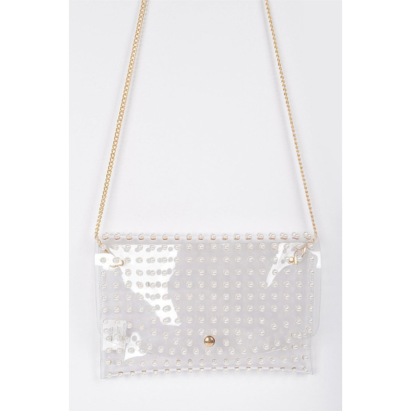 [US] FASHNZFAB faux pearl studded transparent envelope clutch