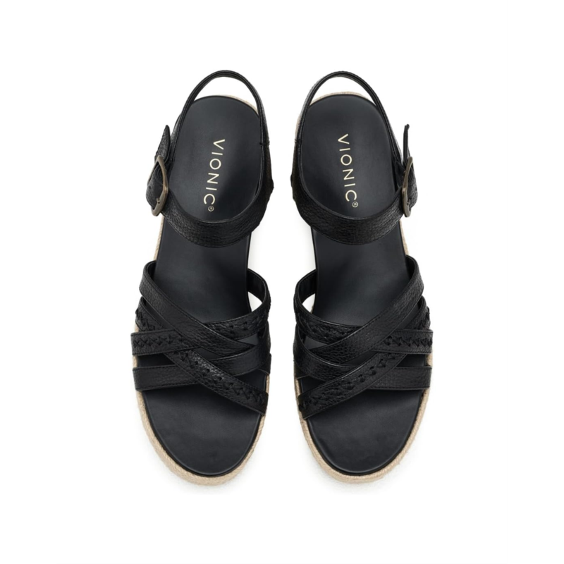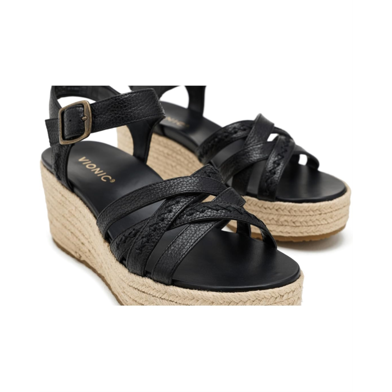- Step into VIONIC Dana, our modern espadrille wedge designed for elevated ease. These womens platform sandals pair artisanal detail with advanced support engineered for days when only empowered movement and refined style will do. Discover the difference in crafted alignment, from brunch to evenings out, with these womens platform sandals built to last. Built-in VIO MOTION Technology footbed featuring contoured arch support, with shock-absorbing cushioning, a deep heel cup to provide stability, and forefoot flexibility. The exclusive alignment technology balances the whole you. For great comfort, we recommend wearing your new Vionic footwear for just a few hours for the first few days to allow your feet to adjust to the new level of orthotic comfort and support. Within one to two weeks, you should find the product completely comfortable and supportive.