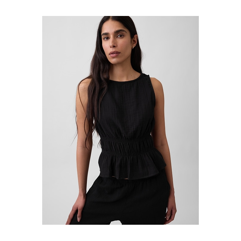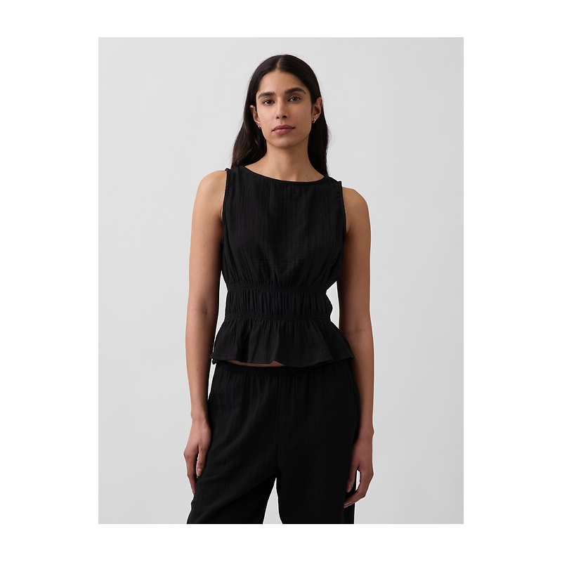 Gap Cotton Gauze Smocked-Waist Peplum Top